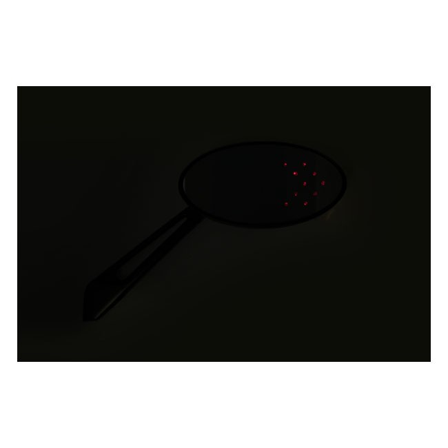 • Z przodu wbudowane są czerwone diody sygnalizacyjne, dzięki czemu przez szkło lustra można zobaczyć czy kierunkowskazy są włączone, czy wyłączone (możesz podłączyć lusterko tak aby oba światła działały jednocześnie lub tylko przednie bursztynowe światło)
