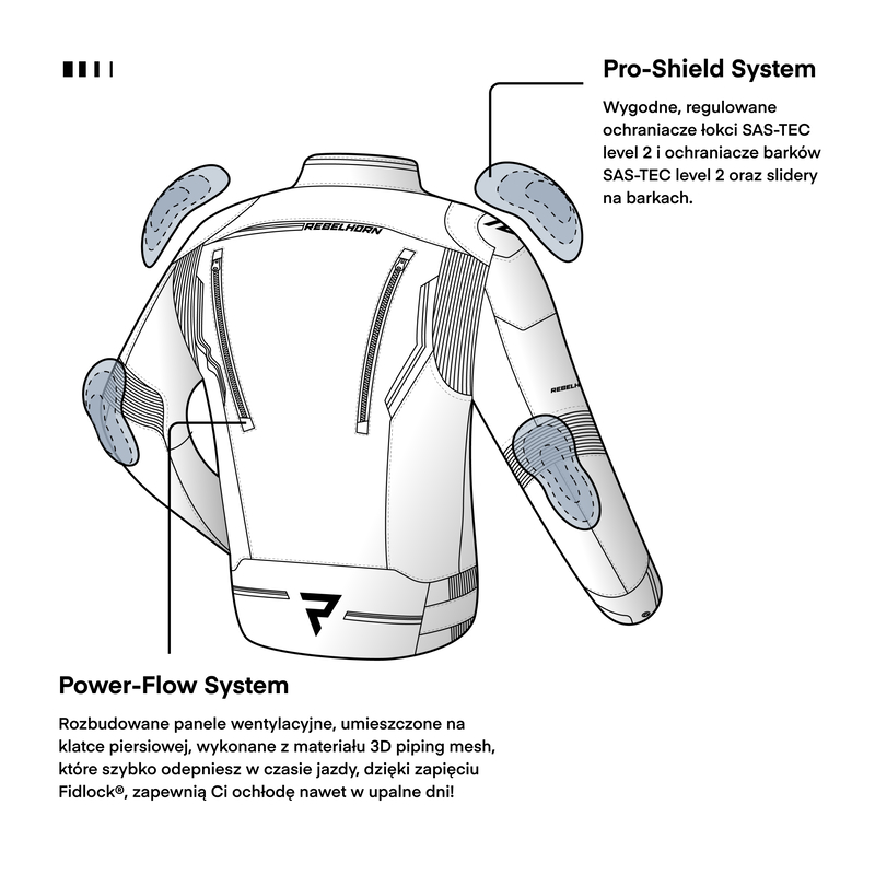 • certyfikowane ochraniacze łokci CE-level 2 z możliwością regulacji położenia
