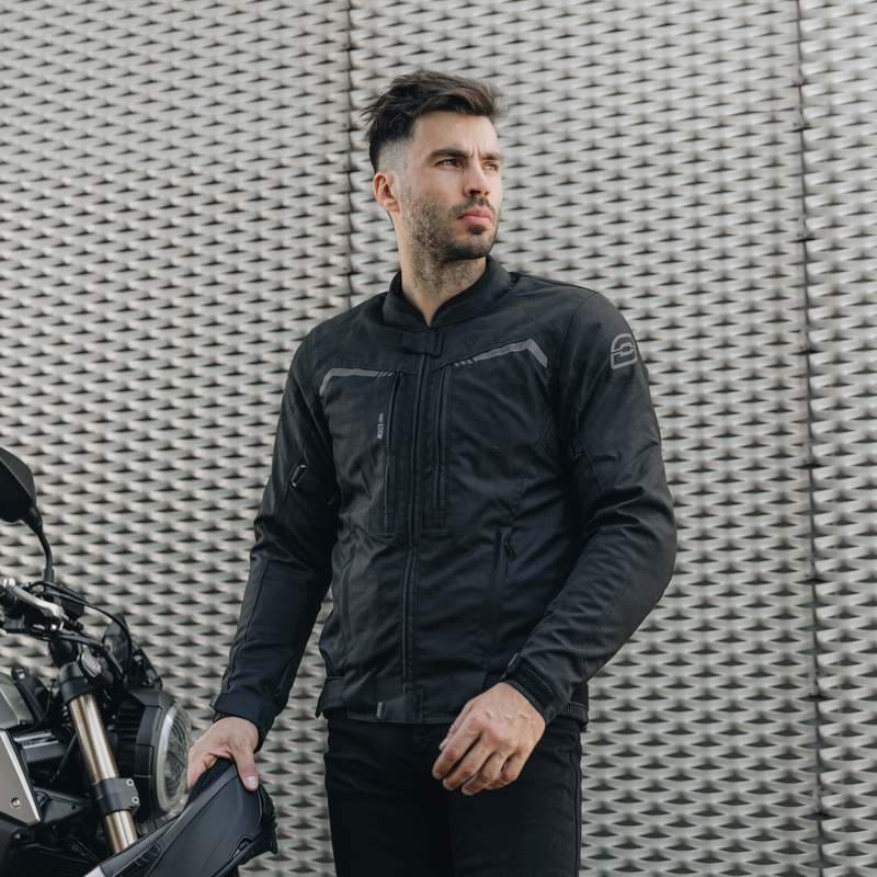 Męska kurtka motocyklowa Delta IV to idealne rozwiązanie na różne warunki pogodowe. Wypinana membrana chroni przed wiatrem i deszczem, podpinka sprawdza się w chłodniejsze dni. Na barkach i łokciach znajdują się protektory. Kurtka jest regulowana w biodrach i rękawach. MATERIAŁ