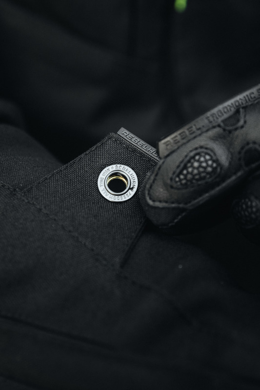 Kurtka tworzy komplet ze spodniami Hardy II, które można spiąć przy pomocy zamków łączących (360° lub krótkiego). Krótki zamek umożliwia także spięcie kurtki z jeansami z nowej kolekcji Rebelhorn.