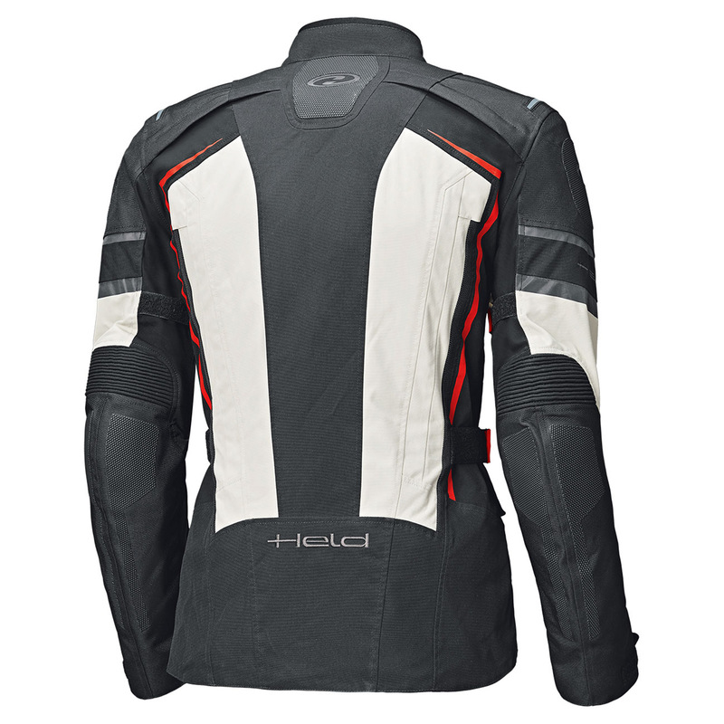 Tekstylna kurtka motocyklowa Held Karakum, dzięki regulacjom ramion i pasa biodrowego, pozwala na indywidualne dopasowanie do walorów sylwetki. Elementy odblaskowe sprawdzą się podczas jazdy motocyklem po zmroku. Held Karakum wyposażono w wyjmowaną podszewkę Gore-Tex, która zapewnia wodoodporność. MATERIAŁ WYKONANIA