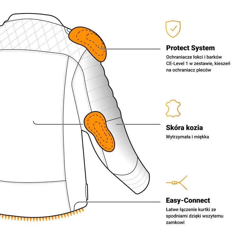 • Certyfikowane ochraniacze barków i łokci dla zagwarantowania ochrony najbardziej narażonych miejsc
