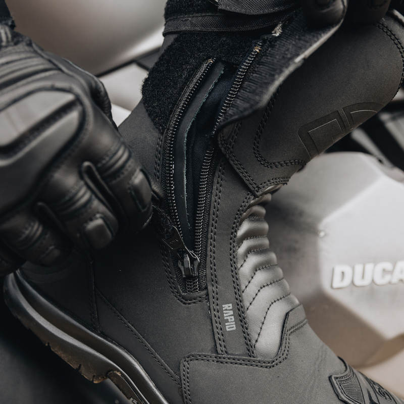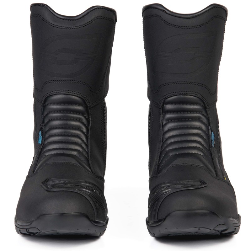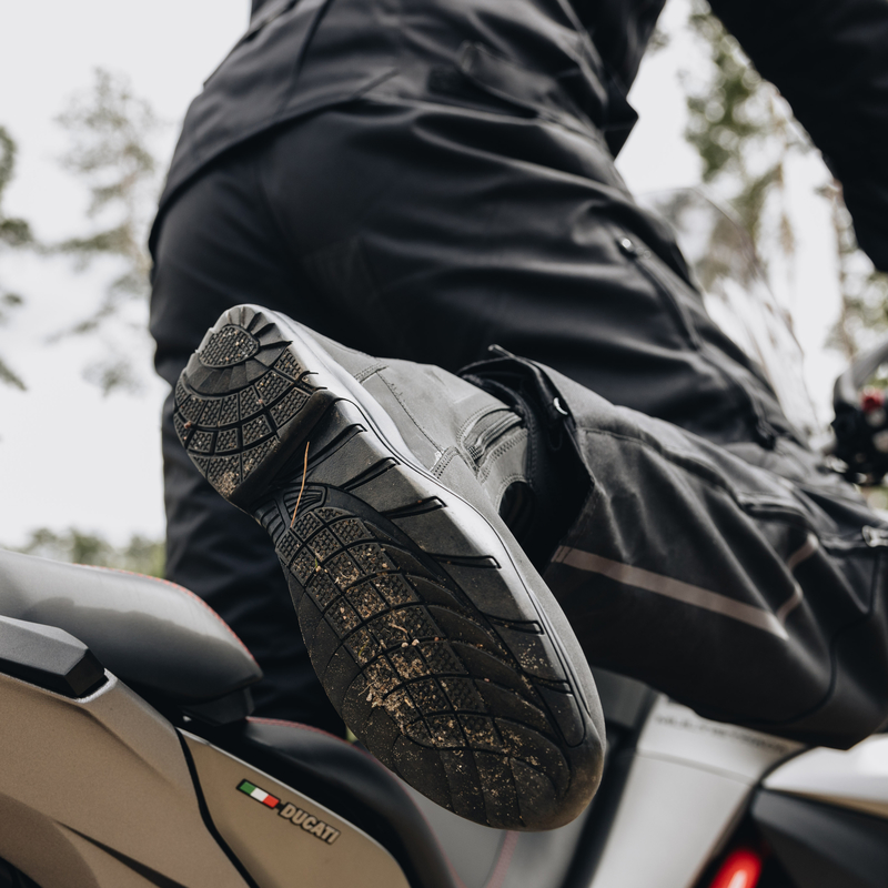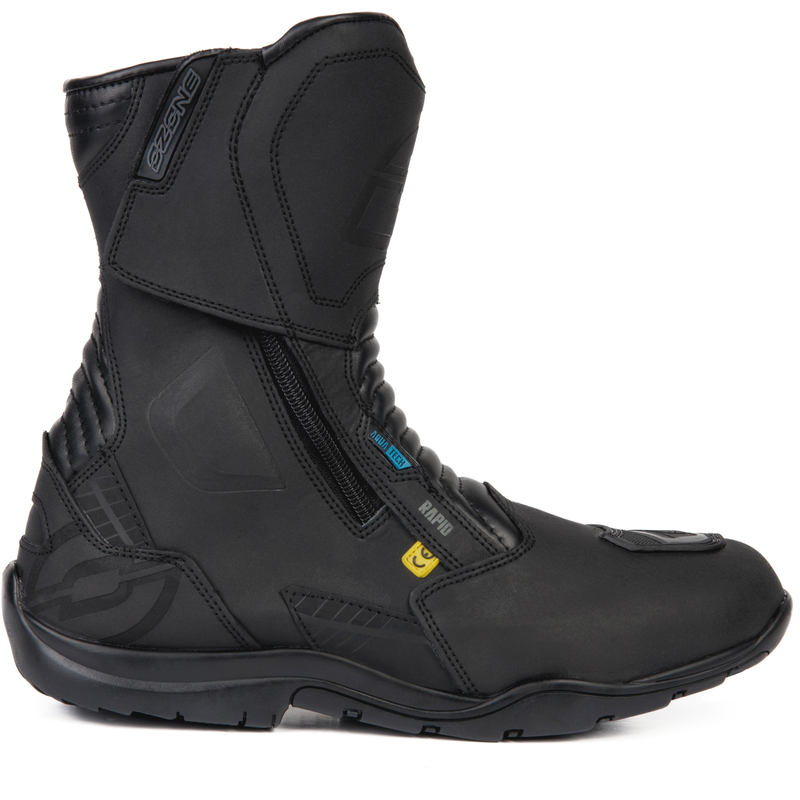 Skórzane buty motocyklowe z gumową podeszwą i wyściółką poliester mesh. Mają w wodoodporną, oddychającą membranę HIPORA, usztywniony czubek oraz wzmocnienie pod dźwignię zmiany biegów. Zapinane na obustronny zamek i rzep. Antybakteryjna wkładka i elastyczne panele zwiększają komfort użytkowania. MATERIAŁ