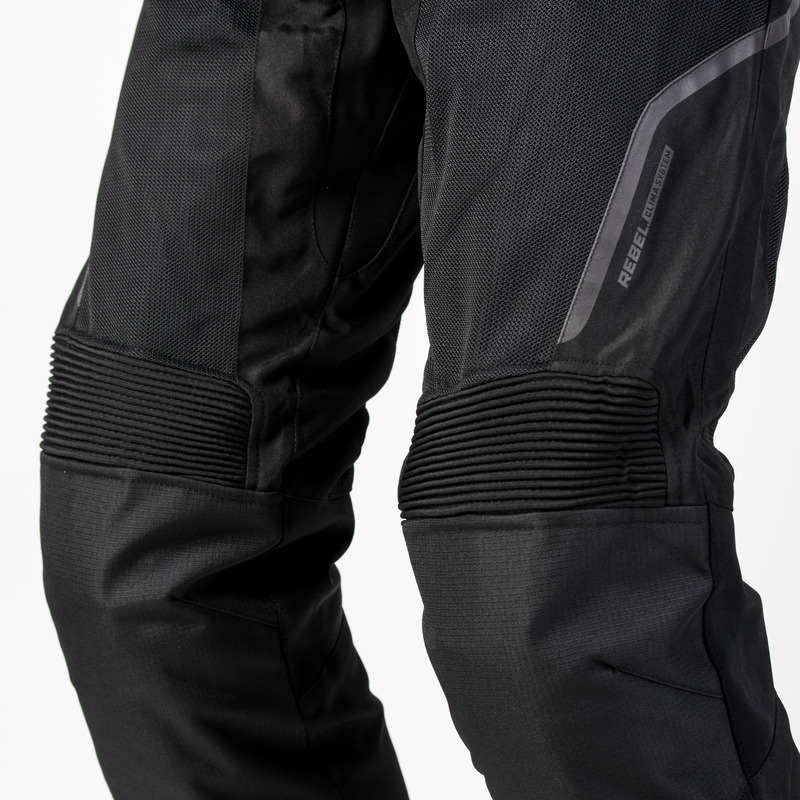 Spodnie motocyklowe tekstylne Rebelhorn Flux to model odporny deszcz, chłód czy upał. Dzięki membranie L-XTR i panelom z meshu spodnie sprawdzą się w każdych warunkach atmosferycznych. Rebelhorn Flux wyposażono w potrójne szwy oraz ochraniacze kolan poziomu 2. MATERIAŁ WYKONANIA