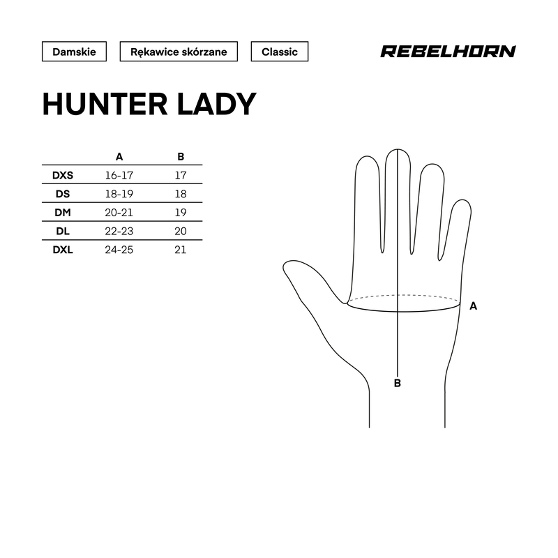 Rebelhorn Hunter Lady to wysokiej jakości rękawice motocyklowe o klasycznym wyglądzie. Zostały wykonane z połączenia skóry bydlęcej i koziej. Wyposażono je w twarde osłony kostek. Dodatkowy zamek na mankiecie ułatwia zakładanie i dodaje im klasycznego stylu. Zostały zaprojektowane tak, by doskonale dopasować się do kobiecej dłoni.