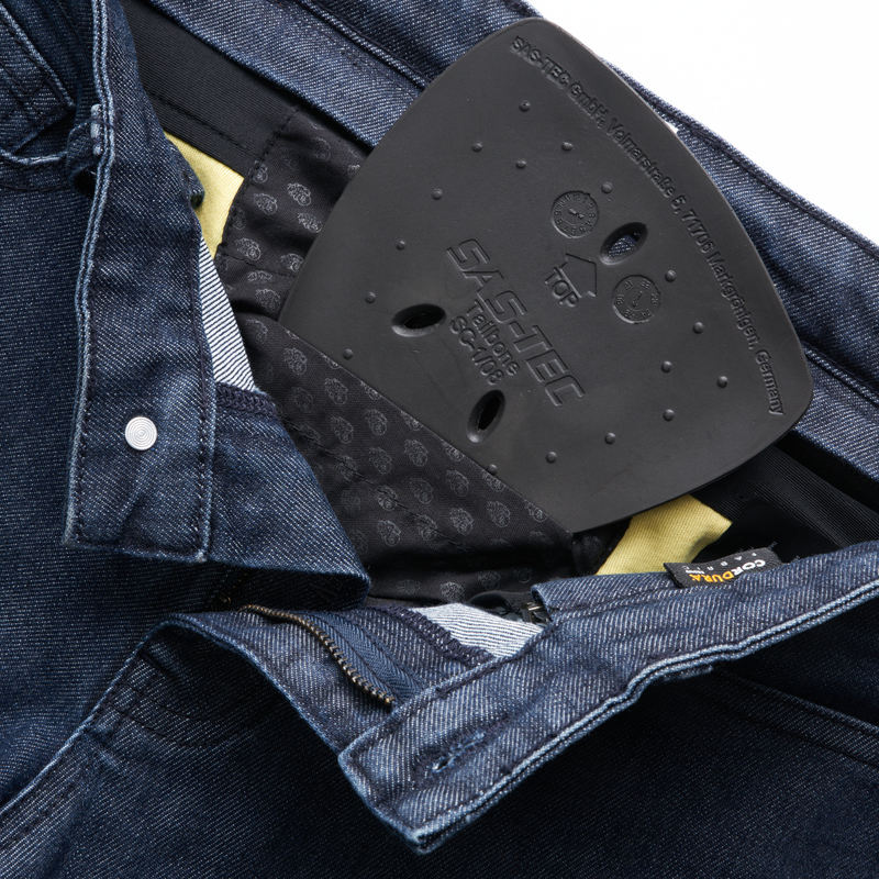 BROGER – JEANSY DLA CIEBIE Jeśli lubisz pokręcić się po centrum, sprawdzić lokalne knajpy, a później odkręcić gaz na prostej za miastem – jeansy motocyklowe Ohio Lady będą idealnie dla Ciebie. Są wyjątkowo wygodne i praktyczne, a dzięki pełnemu zestawowi ochraniaczy SAS-TEC® również bezpieczne. Denim Denim to tkanina tak kultowa, że nikomu nie trzeba jej przedstawiać. Noszona przez ludzi w każdym wieku, na całym świecie. Nic więc dziwnego, że posłużyła do stworzenia spodni motocyklowych – daje w końcu pewność, że będą wygodne i bezpieczne. Tak jak materiał, z którego zostały wykonane. Dzięki użyciu materiału Coolmax jeansy będą przewiewne i komfortowe, natomiast Cordura, materiał o bardzo wysokiej odporności, da Ci gwarancję bezpieczeństwa na trasie. Kevlarowa podpinka Wypinana warstwa wewnętrzna z Kevlaru®, czyli materiału z włókna aramidowego, który jest wyjątkowo lekki, trwały i bardzo wytrzymały. Słynie z odporności na przetarcia, a najbardziej znany ze swojego zastosowania w kamizelkach kuloodpornych. To wszystko sprawia, że jeansy Broger nie zawiodą Cię w trasie, gwarantując najwyższy poziom bezpieczeństwa. Ochraniacze SAS-TEC® Aby zapewnić najwyższe możliwe bezpieczeństwo, wszystkie ochraniacze w jeansach Broger zostały stworzone z trwałej, elastomerowej pianki marki SAS-TEC®. To rewolucyjny materiał, miękki i elastyczny, jednak błyskawicznie twardnieje podczas uderzenia, absorbując jego energię – tym samym chroniąc Twoje kolana i biodra przed urazami. Ochraniacze kolan w jeansach motocyklowych Ohio są wkładane od zewnątrz. Certyfikacja CECertyfikacja produktów to długi i żmudny proces. Wymaga on spełnienia wielu wytycznych narzucanych przez organy certyfikujące, dopracowania absolutnie każdego szczegółu, każdej nici. Wszystkie produkty marki Broger uzyskały certyfikację co oznacza, że są wystarczające bezpieczne, by bez wahania jeździć w nich na motocyklu. Tabela Rozmiarów