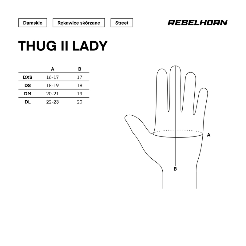 Rebelhorn Thug II Lady to krótkie rękawice motocyklowe o ponadczasowym, klasycznym kroju. Uszyto je z miękkiej i wytrzymałej skóry koziej. Zostały zaprojektowane tak, aby doskonale dopasować się do kobiecej dłoni. Mają panele z pianki SAS-TEC®, absorbującej siłę uderzenia. Dzięki miękkiej wyściółce i zewnętrznym szwom zapewniają wysoki komfort użytkowania.