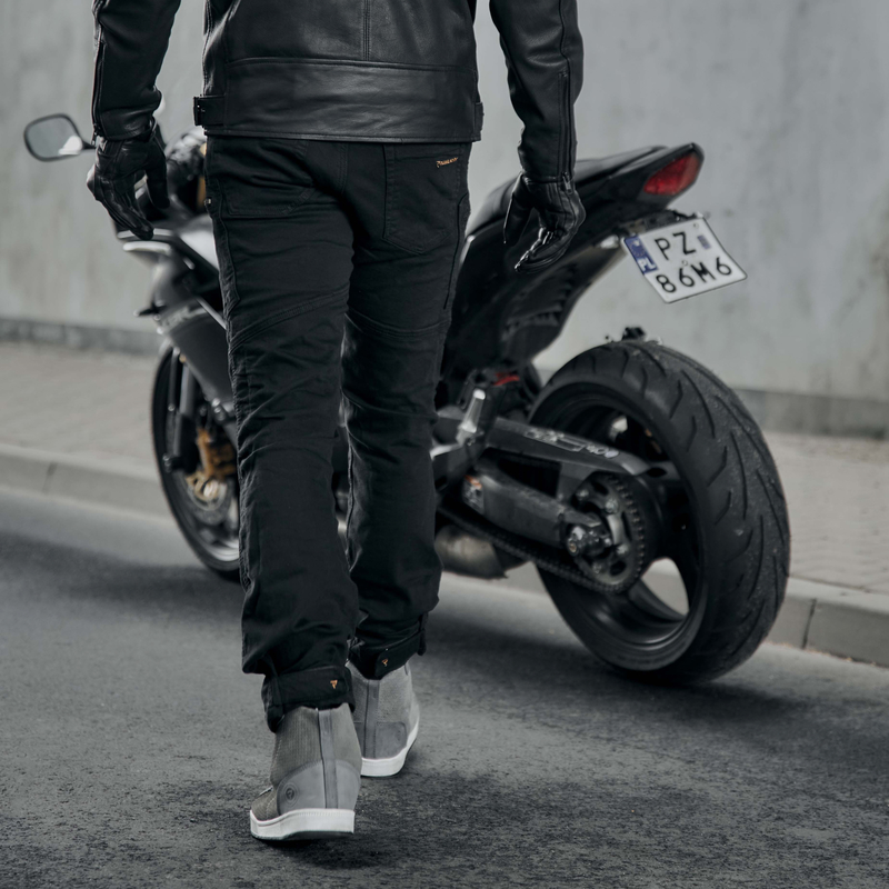 Rebelhorn Urban III to wygodne jeansy motocyklowe o ponadczasowym kroju loose fit z regulacją w pasie i na nogawkach. Stanowią idealne rozwiązanie dla osób, łączących jazdę na motocyklu w mieście z aktywnością zawodową lub stylem życia. Pojemne kieszenie typu cargo i nieco bardziej swobodny krój odpowiadają na ich oczekiwania. Mają też praktyczne wyloty gorącego powietrza w kroku.
