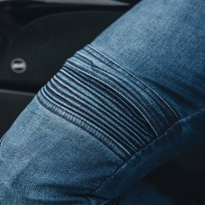 Motocyklowe spodnie jeansowe Hornet mają wyjmowane ochraniacze kolan CE Level 2. Kieszenie na biodrach umożliwiają dołożenie ochraniaczy. Elastyczne wstawki nad kolanami dają swobodę ruchów. Długie zamki umożliwiają łatwe wkładanie i zdejmowanie spodni. Spodni uszyte w kroju slim. MATERIAŁ
