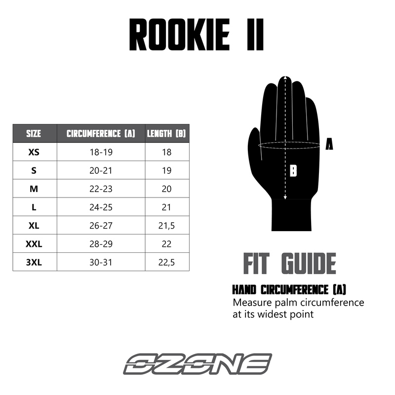 Rękawice motocyklowe Ozone Rookie II absorbują siłę uderzenia, dzięki specjalnym piankowym panelom. Dodatkową ochronę zapewniają wzmocnienia po wewnętrznej stronie dłoni. Rękawice Ozone Rookie II wyposażono w paski regulacyjne, pozwalające na precyzyjne dopasowanie. MATERIAŁ WYKONANIA