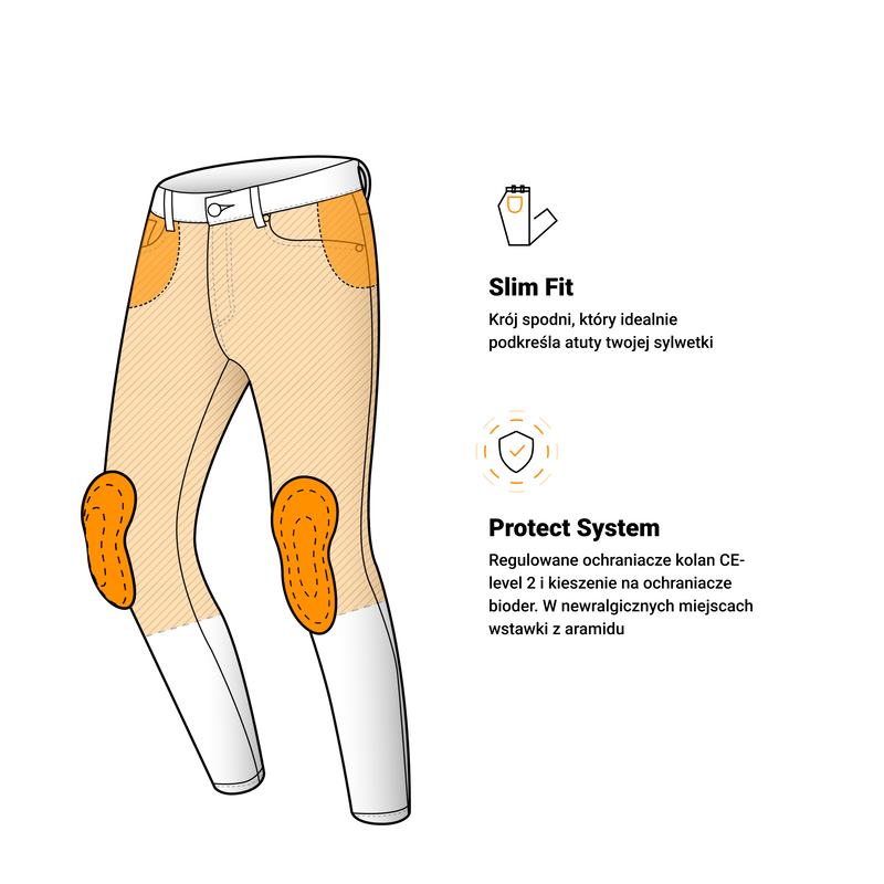 O Twoje bezpieczeństwo dbają: ochraniacze kolan Flying Bats CE-level 2 oraz panele z wytrzymałego aramidu. Dzięki temu, że ochraniacze są ultracienkie spodnie można nosić na co dzień, np. po dojeździe do pracy czy na uczelnię.