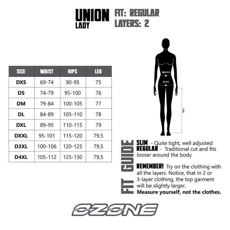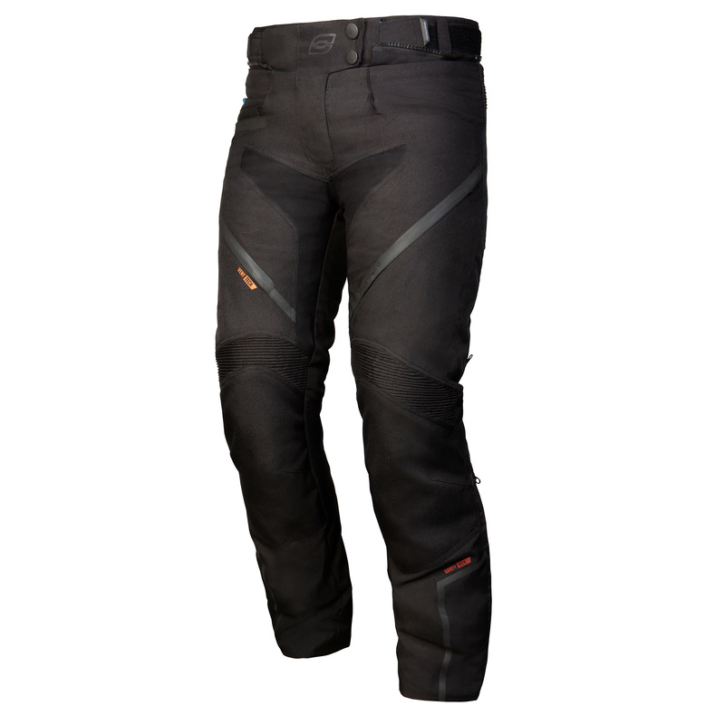 Motocyklowe spodnie damskie Union z elastycznymi wstawkami nad kolanami. Mają system rozbudowanej wentylacji z dwoma kanałami przepływu powietrza. Wyposażone w wypinaną membranę i ochraniacze kolan z regulacją wysokości. Posiadają elementy odblaskowe i kieszenie na ochraniacze na biodrach. MATERIAŁ