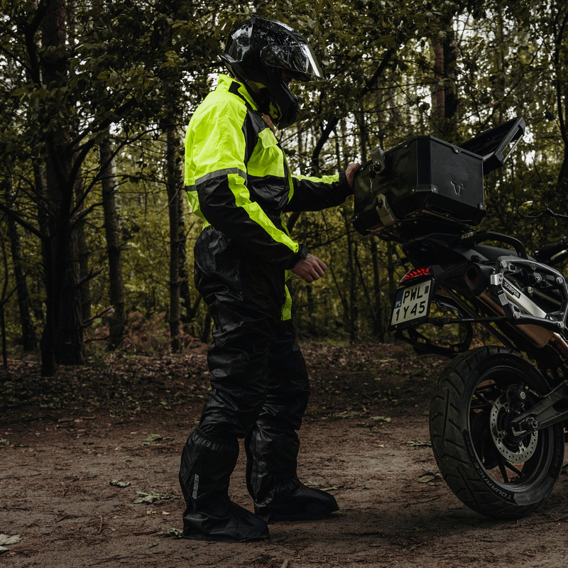 Kombinezon motocyklowy przeciwdeszczowy Ozone OZ 141, to rozwiązanie niezbędne na dłuższe trasy i zmienne warunki pogodowe. Wykonanie z poliestru i PVC zapewnia nieprzemakalność. Ozone OZ 141 ma odblaskowe wstawki, dzięki którym jest się dobrze widocznym po zmroku i w gorszych warunkach pogodowych. MATERIAŁ WYKONANIA