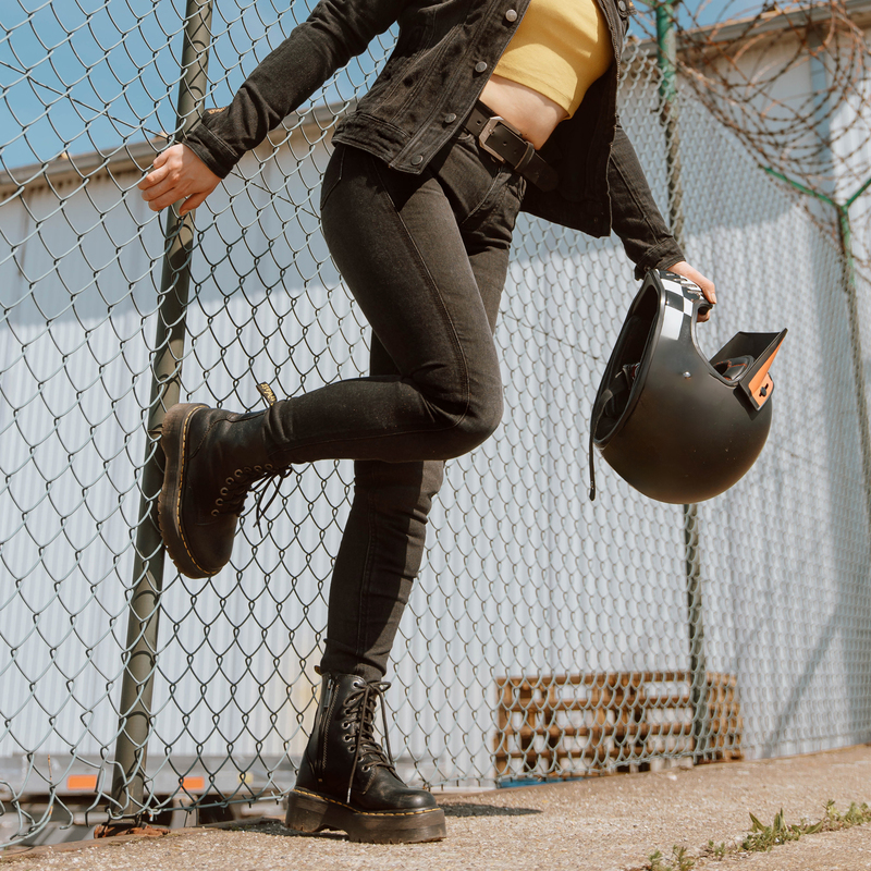 Wysoki stan zapewnia maksymalny komfort podczas użytkowania. W pozycji motocyklowej dobrze osłania okolice pasa i zapobiega zsuwaniu się spodni, a w wyprostowanej pozycji dobrze podkreśla kobiecą sylwetkę.
