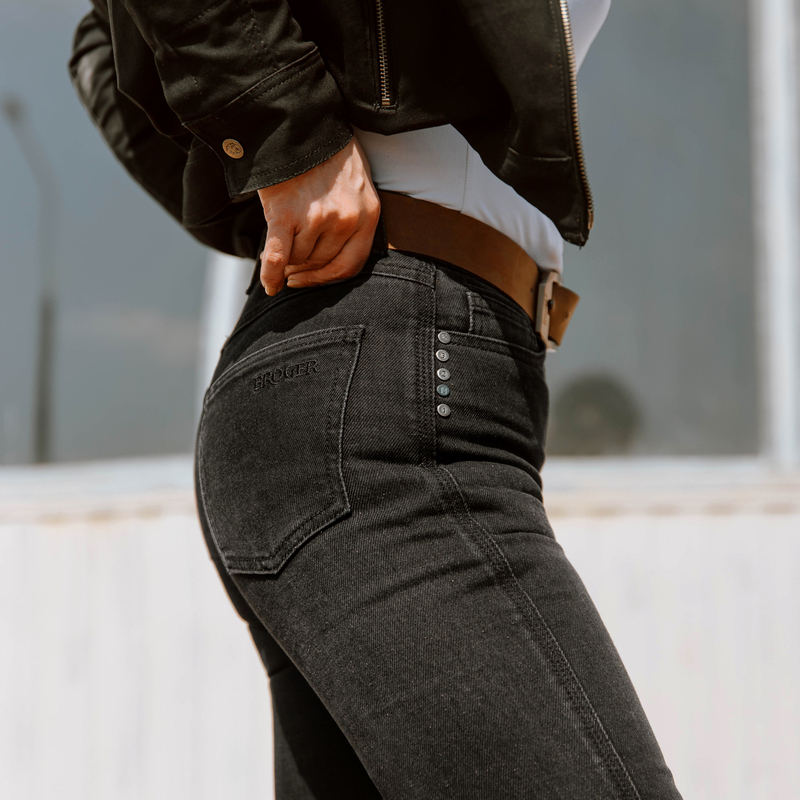 Dzięki dodatkowi elastanu, jeansy motocyklowe Broger Florida II Lady gwarantują idealne dopasowanie i swobodę ruchów.