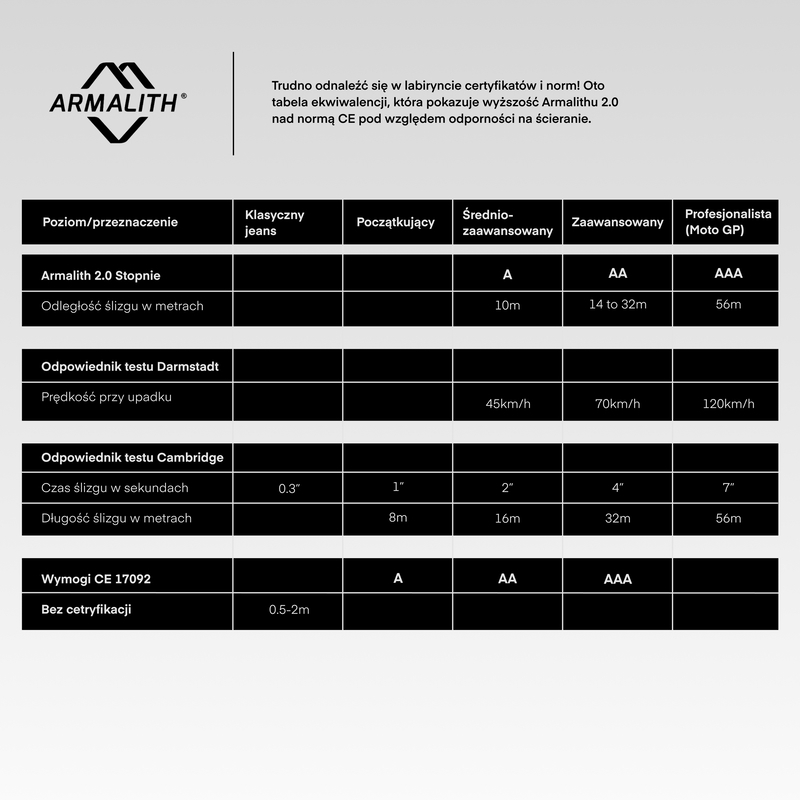 O Twoje bezpieczeństwo dbają: ochraniacze SAS-TEC® (biodra, kolana), osłona kości ogonowej oraz wytrzymały Armalith zapewniający najwyższy stopień ochrony.
