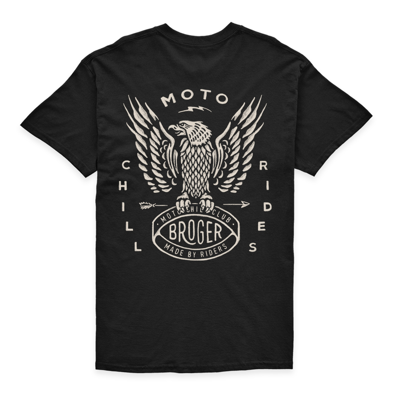 Postaw na jakościowe rozwiązania od Broger Moto! T-shirt wykonany w 100% z wyselekcjonowanej bawełny premium, zdobiony ręcznie projektowanymi grafikami! Gotowy na zalanie piwem, smarem i porządną dawką motocyklowej przygody!