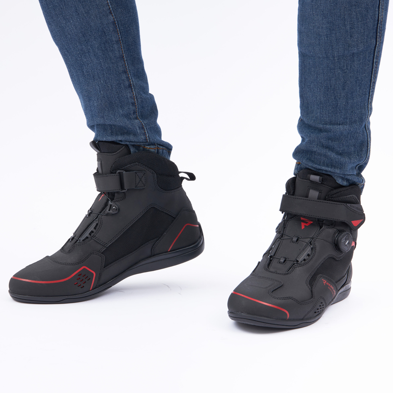 Rebelhorn Spark II to krótkie, miejskie buty motocyklowe ze sportowym charakterem. Mają system szybkiej regulacji i sznurowania ATOP. Ochronę w butach Spark II zapewniają certyfikowane ochraniacze kostek i wzmocnienia na czubku buta oraz pod dźwignię zmiany biegów. Buty wyposażono w oddychającą wyściółkę 3D mesh i panele steel mesh.