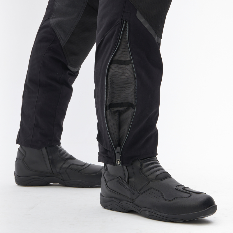 Spodnie można spiąć z kurtką Range oraz każdą kurtką tekstylną z aktualnej kolekcji Rebelhorn.