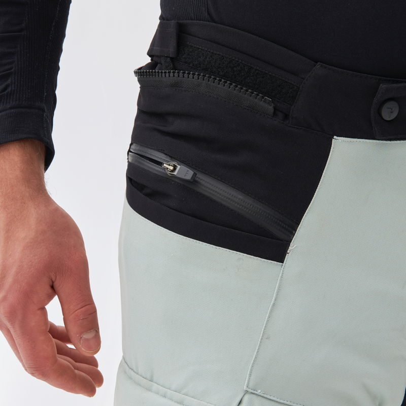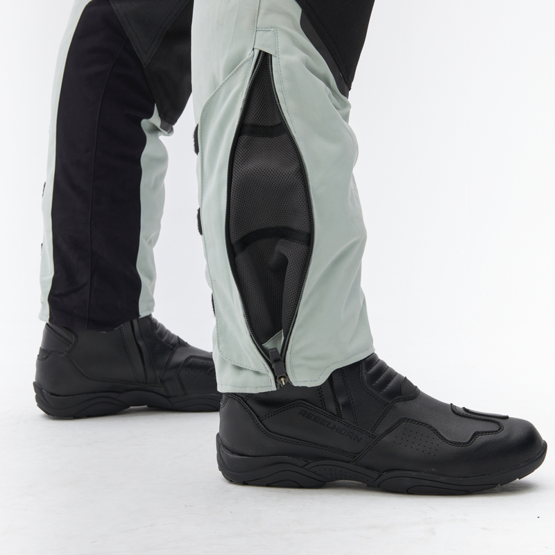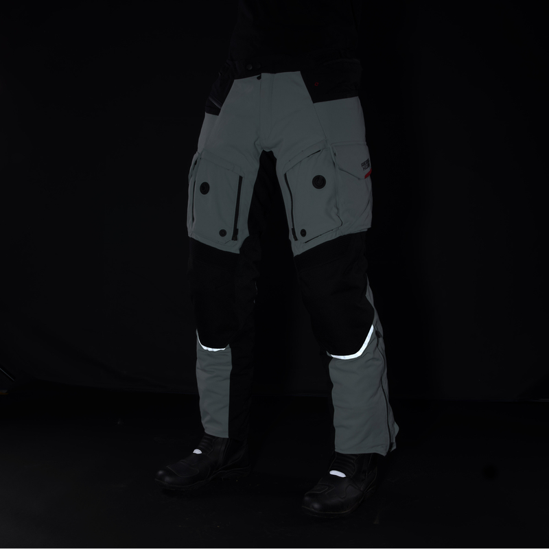 Spodnie można spiąć z kurtką Range oraz każdą kurtką tekstylną z aktualnej kolekcji Rebelhorn.
