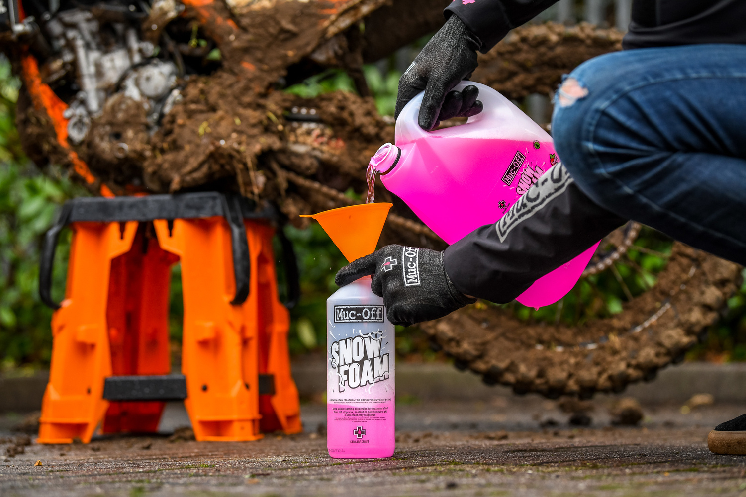 Muc-Off Snow Foam to efekt intensywnych badań i pracy zespołu ekspertów Muc-Off w zakresie detailingu. Specjalna formuła znacznie ogranicza możliwość uszkodzenia lakieru przy czyszczeniu uporczywych zabrudzeń. Poprzez nałożenie Snow Foam przygotowujemy motocykl do mycia i czyszczenia detali. Snow Foam to produkt nowej generacji, oparty na neutralnym ph oraz na bazie wody.