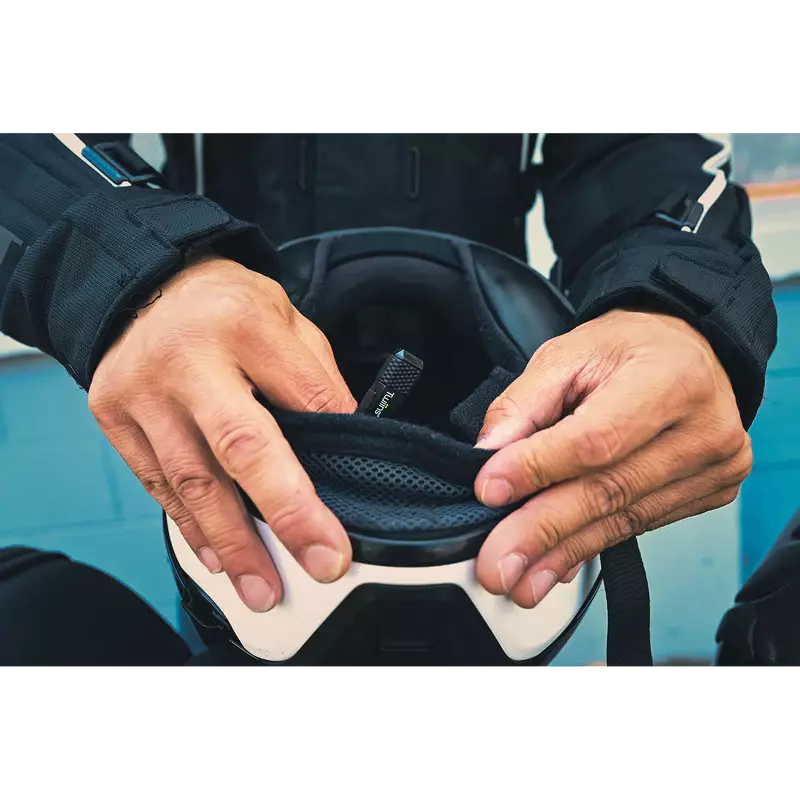 Pasuje do każdego standardowego kasku, zachowując jego oryginalny kształt, właściwości aerodynamiczne i standardy bezpieczeństwa. Dwa głośniki HiFi są połączone cienkim przewodem ukrytym pod wyściółką kasku, gdzie pozostaje niezauważony, zapewniając najwyższy poziom bezpieczeństwa i komfortu.