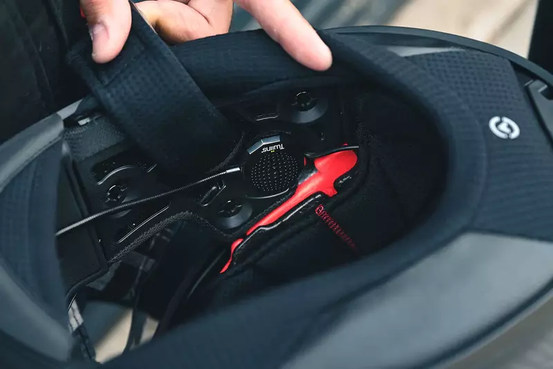 Pasuje do każdego standardowego kasku, zachowując jego oryginalny kształt, właściwości aerodynamiczne i standardy bezpieczeństwa. Dwa głośniki HiFi są połączone cienkim przewodem ukrytym pod wyściółką kasku, gdzie pozostaje niezauważony, zapewniając najwyższy poziom bezpieczeństwa i komfortu.