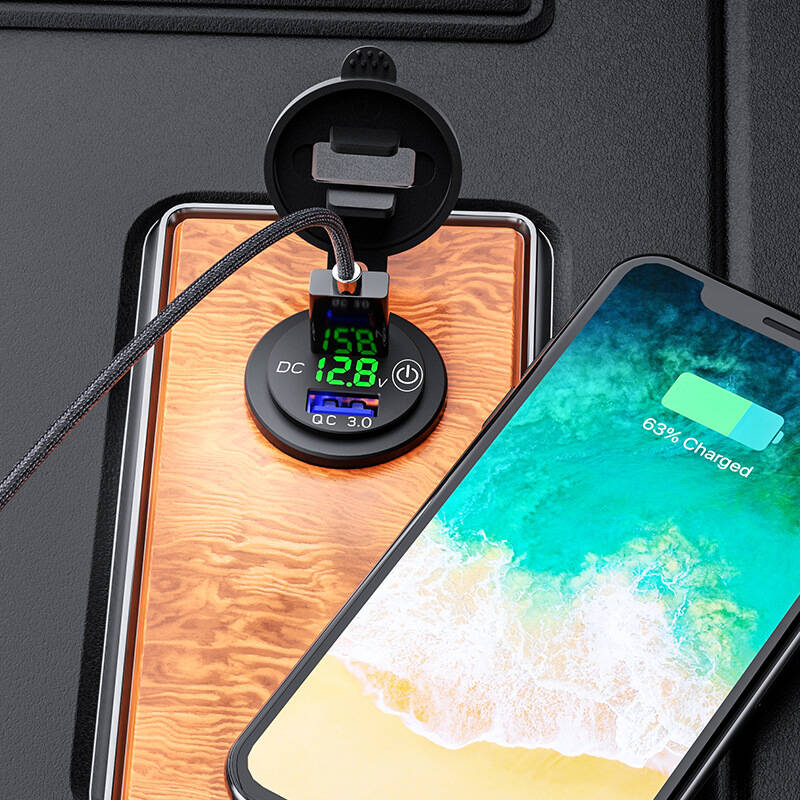 Urządzenie posiada wbudowany woltomierz podświetlony w kolorze czerwony. Pokazuje on informację o aktualnym napięciu na podawanym zasilaniu.