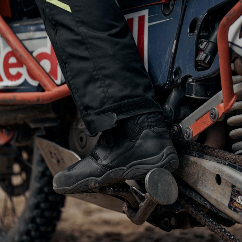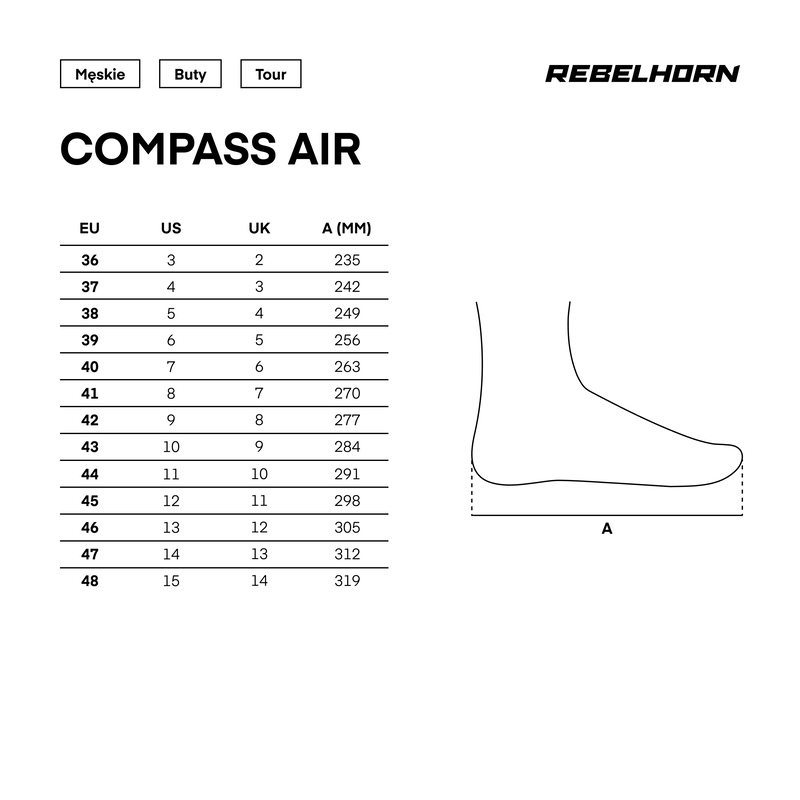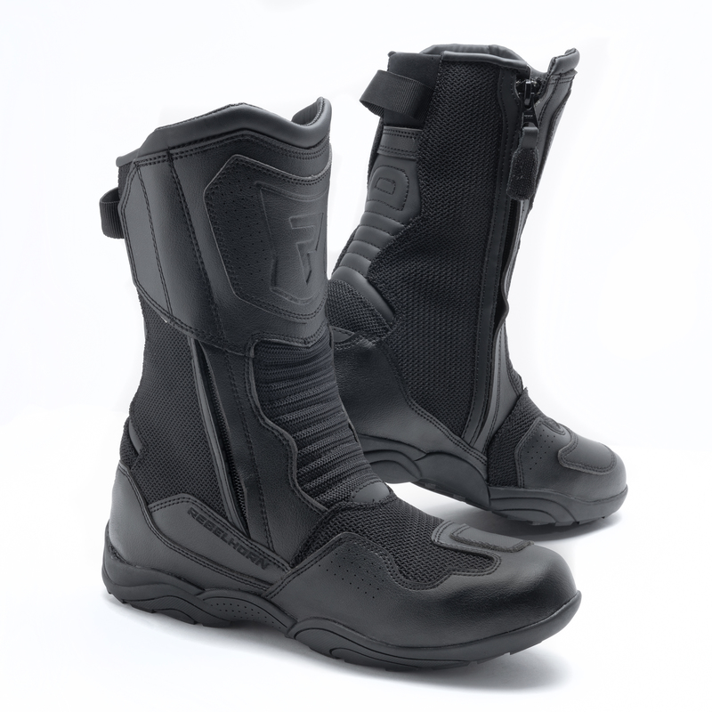 Rebelhorn Compass AIR to buty motocyklowe przeznaczone do szosowej turystyki. Sprawdzą się szczególnie podczas jazdy w ciepłe dni. Rebelhorn Compass Air wyposażono w panele steel mesh usprawniające przepływ powietrza, a także twarde osłony, usztywnienia i wzmocnienia zapewniające bezpieczeństwo. Długie zamki ułatwiają zakładanie i zdejmowanie butów.
