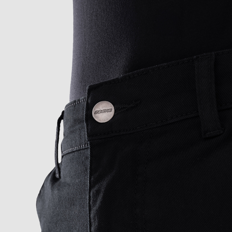 Jeansy motocyklowe Ozone Jane zostały zaprojektowane z myślą o kobiecej sylwetce. Wewnętrzna warstwa kevlaru połączonego z poliestrem zwiększa poziom ochrony, podczas gdy praktyczna kieszeń cargo umieszczona na boku uda ułatwia przechowywanie potrzebnych przedmiotów.