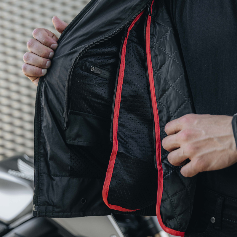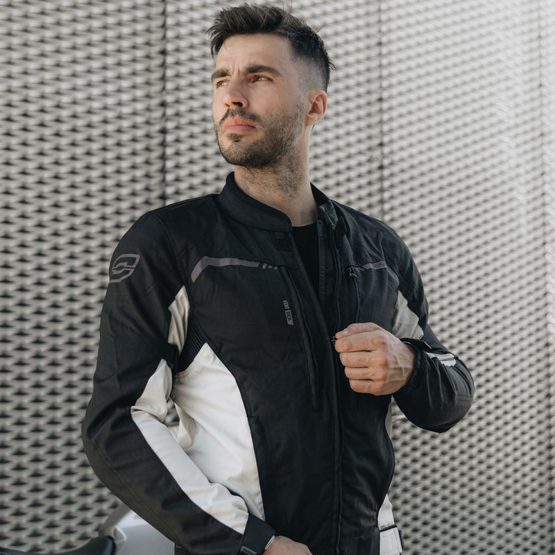 Męska kurtka motocyklowa Delta IV to idealne rozwiązanie na różne warunki pogodowe. Wypinana membrana chroni przed wiatrem i deszczem, podpinka sprawdza się w chłodniejsze dni. Na barkach i łokciach znajdują się protektory. Kurtka jest regulowana w biodrach i rękawach. MATERIAŁ