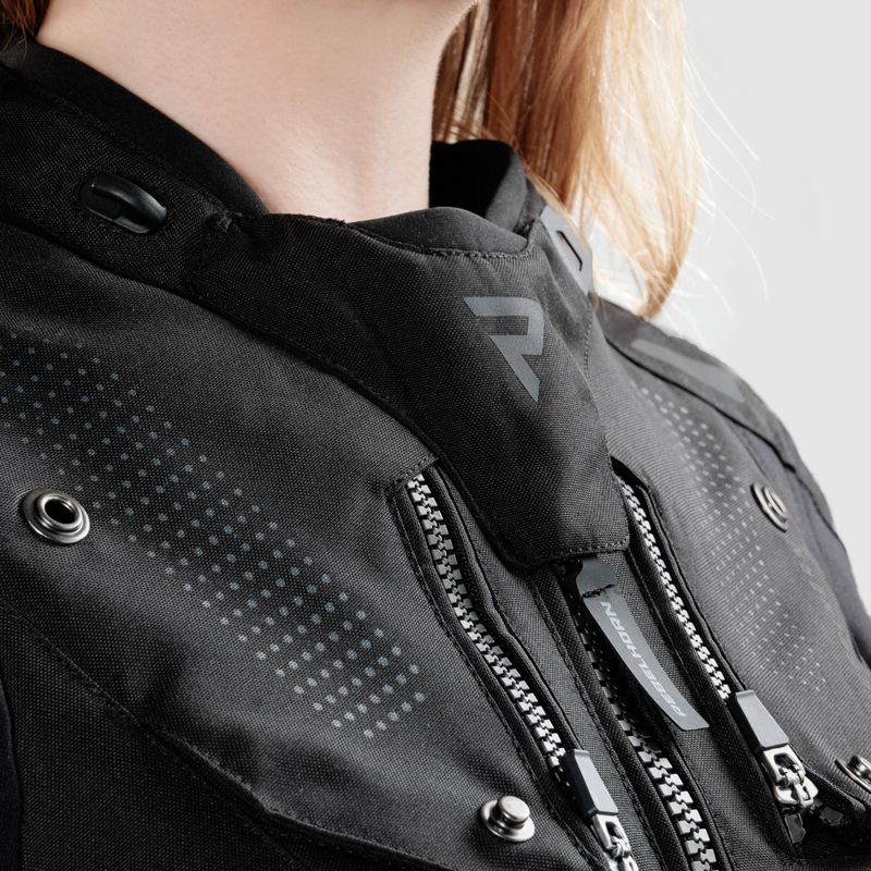 • Zamki łączące typu 8VST: Dwa rodzaje zamków (360 oraz krótki) do łączenia kurtki ze spodniami,