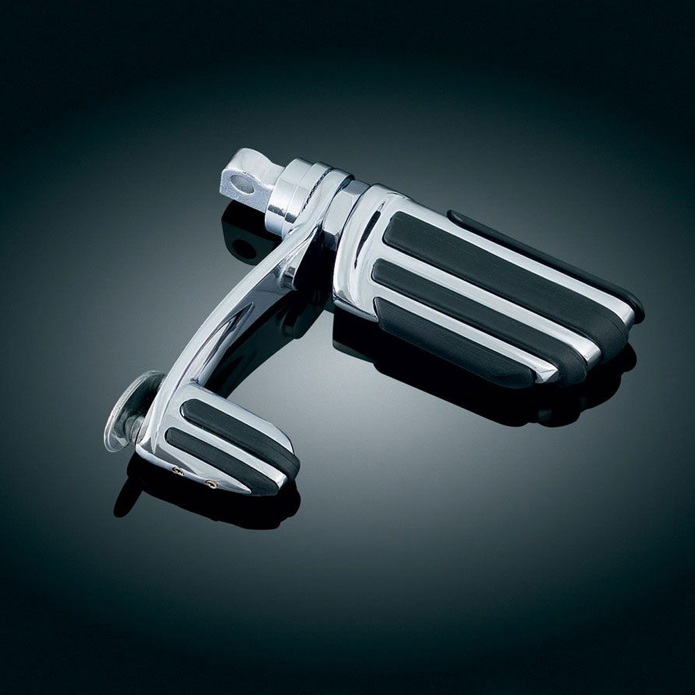 Kuryakyn Pilot Footpegs with Stirrups to wysokiej jakości podnóżki motocyklowe zaprojektowane z myślą o komforcie i stylu. Wykończenie w eleganckim chromie podkreśla klasyczny wygląd motocykla, a solidna konstrukcja gwarantuje trwałość i niezawodność nawet podczas długich tras.