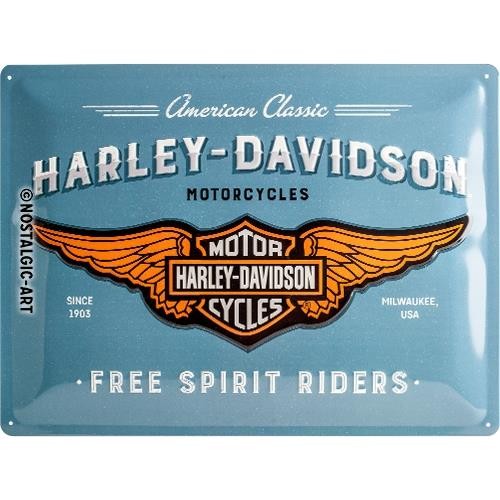 Szyld „Harley-Davidson Free Spirit" to nie tylko kawałek blachy...to precyzyjnie wytłoczona, solidna dekoracja, która wniesie charakterystyczny klimat marki Harley-Davidson do Twojego garażu, salonu czy biura.