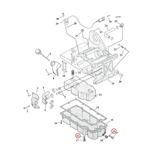 Harley-Davidson 11105 O-ring śruby spustowej oleju silnika, skrzyni, sprzęgła