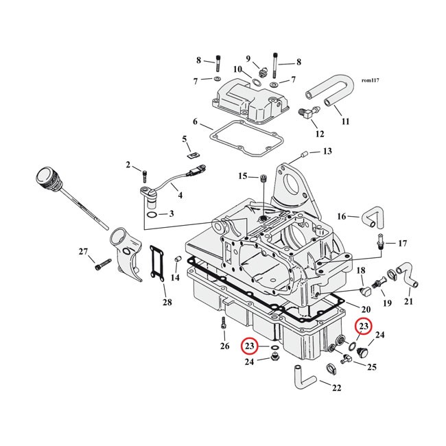 • Silnik (korek spustu oleju): Dyna 1991-2017, Softail 2000-2024, Touring 1994-2023